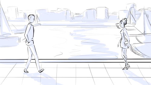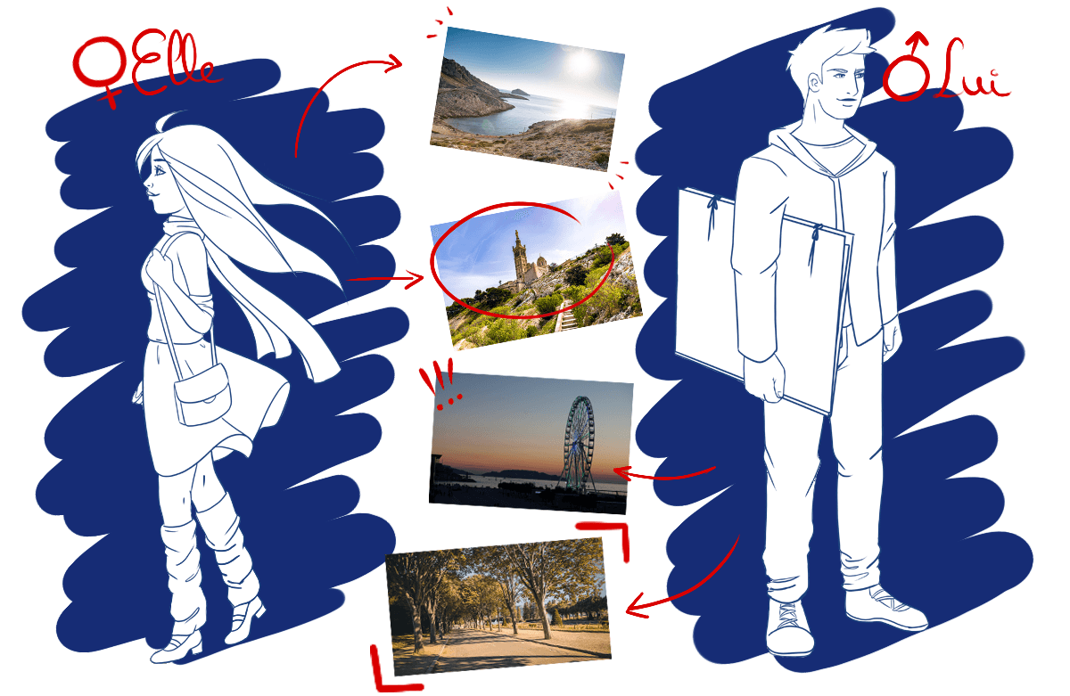 Dans les différentes scènes qui se succèdent, les deux protagonistes passent leur temps à se croiser dans les différents lieux emblématiques de Marseille.